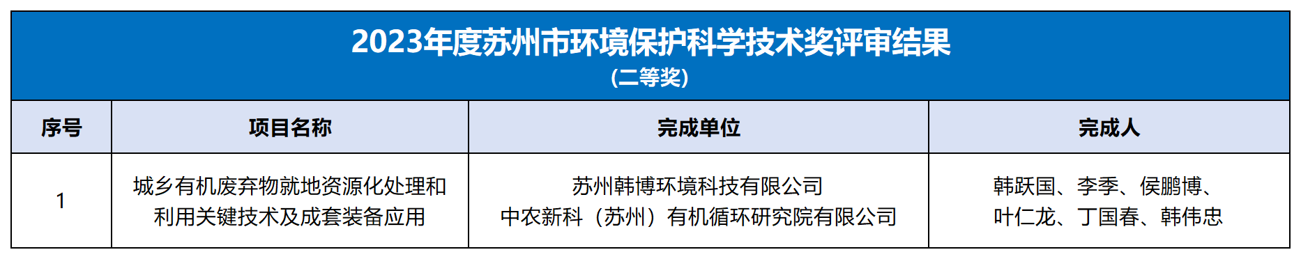 我公司与中国农业大学开展产学研合作,成立中农新科(苏州)有机循环研究院有限公司。研究院作为项目联合完成单位,主要围绕有机资源循环利用领域开展技术研发、平台建设、项目孵化、成果转化及产业化等工作。获得该项荣誉是对我公司在有机废弃物处理利用技术先进性的高度认可,也是对我公司在技术创新、成果应用和行业引领等方面的充分肯定。公司将以此为契机,持续推动环境保护技术不断取得新的发展、新的进步、新的突破,为国家绿色生态发展做出更大贡献。
